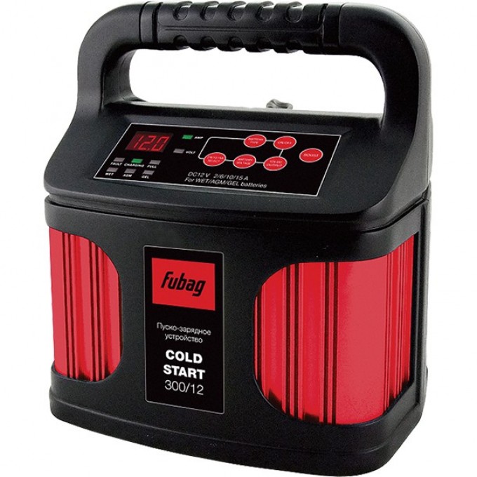 Пуско-зарядное устройство FUBAG COLD START 300/12 обеспечивает бесперебойную работу и возможность запуска аккумулятора в холодное время года, а также может быть использована для эффективной зарядки батареи импульсным напряжением с предварительным ее восстановлением (десульфатацией). В данной модели сочетается компактность и достаточно мощное устройство весом менее 1,5 кг.