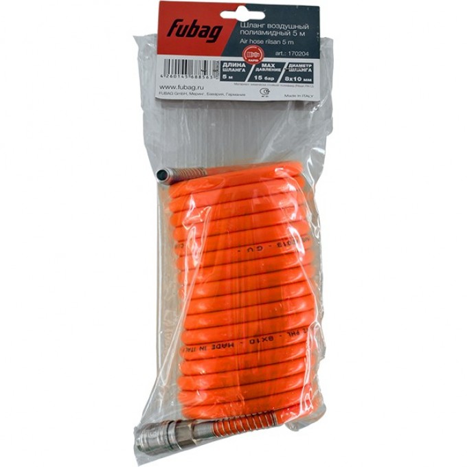 Шланг FUBAG спиральный с фитингами рапид, химически стойкий полиамидный (рилсан), 15бар, 8x10мм, 5м 170204_new