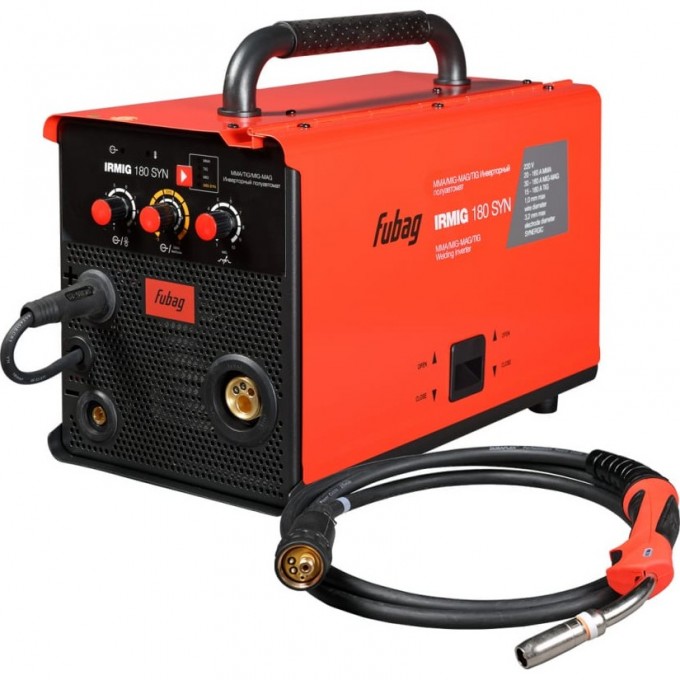 Сварочный полуавтомат инвертор FUBAG IRMIG 180 SYN 31446 + Горелка FB 250 3m 38443 31446.1 представляет собой профессиональный аппарат для сварки заготовок и конструкций из стали, металлов и сплавов. Работает в режимах MMA, TIG, MIG/MAG с газом и без газа.